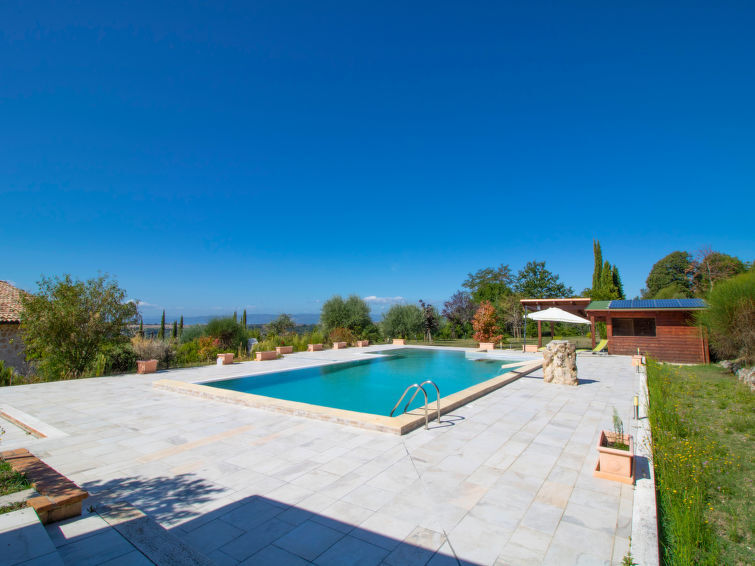 8-Zimmer-Villa 250 m2 auf 2 Stockwerken. Zweckmässig und komfortabel eingerichtet: offenes grosses Wohnzimmer mit offenem Kamin, TV und Flachbildschirm. Offenes grosses Esszimmer mit TV und Flachbildschirm. Ausgang zum Garten. 2 Doppelzimmer, jedes Zimmer mit Dusche/Bidet/WC, TV und Flachbildschirm. 1 grosses Doppelzimmer mit TV und Flachbildschirm. Grosse Küche (5 Kochplatten, Backofen, Geschirrspüler, Tiefkühler, elektrische Kaffeemaschine). Bad/Bidet/WC, sep. WC, Doppelwaschbecken, Whirlbadewanne. Obergeschoss: abgeschrägtes, offenes Wohnzimmer. Ausgang zur Terrasse. 1 abgeschrägtes Zimmer mit 2 Betten. 1 abgeschrägtes Doppelzimmer mit TV und Flachbildschirm. Ausgang zur Terrasse. Dusche/Bidet/WC. Klimaanlage. Panoramasicht auf die Landschaft. Zur Verfügung: Waschmaschine, Fliegengitter, Haartrockner. Internet (Wireless LAN). Bitte beachten: Nichtraucher-Haus. Bei Belegung mit weniger Personen als der maximalen Personenzahl stehen nicht alle Schlafzimmer zur Verfügung. IT054028C204030529