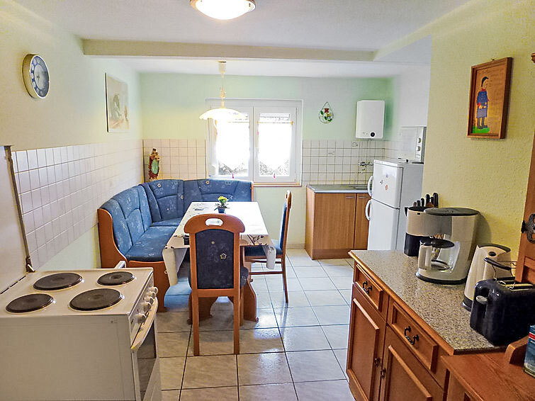 Apt 3 pièces 70 m2, au rez-de-chaussée. Séjour avec TV (satellite). 1 chambre double. 1 chambre avec 2 lits (90 cm, longueur 200 cm). Cuisine (four, micro-ondes, cafetière électrique) avec table pour les repas, chauffe eau. Douche/WC. Chauffage électrique, chauffe eau. A disposition: lave-linge. Veuillez noter: logement non-fumeur.