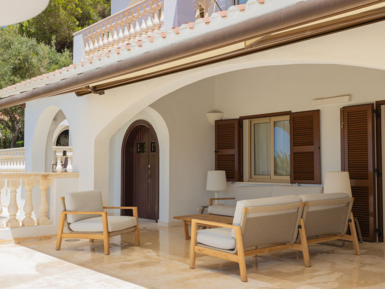 Son Bou: Belle villa accueillante, confortable "Villa Maitreya", de 2 étages. Au centre de San Jaime, situation surélevée quartier résidentiel, à 500 m de la mer, à 500 m de la plage. A usage privé: jardin propice à la détente, piscine rectangulaire (10 x 6 m, profondeur 150 cm, disponibilité saisonnière: 01.Mai. - 31.Oct.). Douche extérieure, jardinet, tonnelle, pergola, meubles de jardin, barbecue. Infrastructures de la Maison: accès internet, Connexion WIFI, bain à remous , air-conditionné, système d'alarme, lave-linge, sèche-linge. Parking public possible dans la rue. Magasins, magasin d'alimentation, supermarché, restaurant, bar, café 600 m, arrêt de bus "Carrer del Prat" 400 m, plage de sable "Son Bou" 500 m. Veuillez noter: voiture recommandée. Équipement pour bébés sur demande (inclus). Bien convenant à 12 adultes. Le propriétaire n'accepte pas les groupes de jeunes. Aéroport 20 km de la maison.