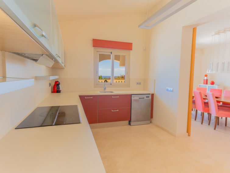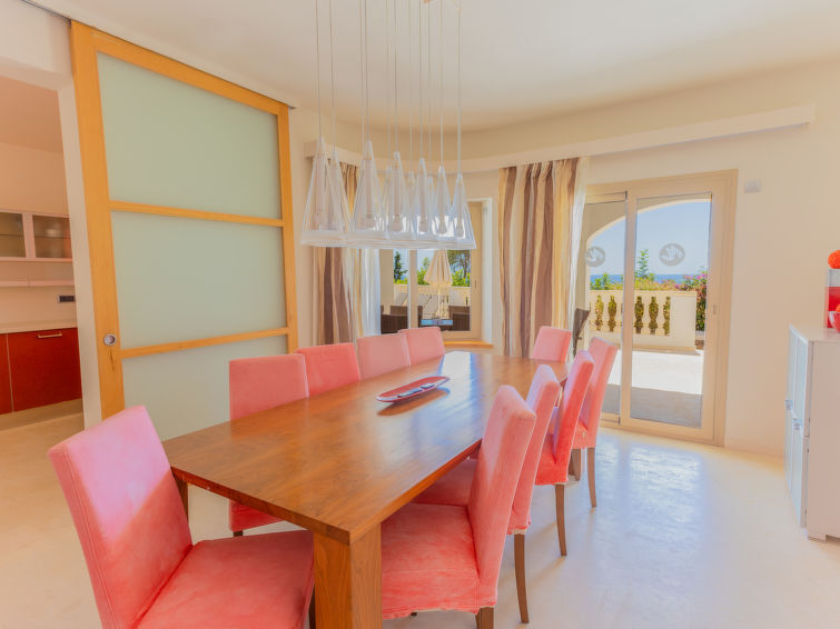 "Villa Maitreya", villa 7 pièces 470 m2 sur 2 niveaux. Logement idéal pour 12 adultes. Aménagement confortable et plaisant: grand séjour/salle à manger ouvert avec cheminée (uniquement à titre de décoration), table pour les repas, TV (satellite), Télévision numérique, chaînes de TV internationales et écran plat. Sortie sur le jardinet, sur la piscine. 1 grande chambre double avec 2 lits (90 cm, longueur 200 cm), douche à jets, TV et air-conditionné. Sortie sur le jardinet, sur la piscine. 1 grande chambre double avec 2 lits (90 cm, longueur 200 cm), douche/WC et air-conditionné. Sortie sur le jardinet, sur la piscine. 1 grande chambre double avec 1 grand-lit (180 cm, longueur 200 cm), bain/douche/WC, double vasque, bain à remous , TV, chaînes de TV internationales, écran plat et air-conditionné. Sortie sur le jardinet, sur la piscine. Cuisine (four, lave-vaisselle, 4 plaques à induction, grille-pain, bouilloire électrique, micro-ondes, congélateur, cafetière électrique). À l'étage supérieur: 1 grande chambre double 45 m2 avec 1 grand-lit (180 cm, longueur 200 cm), bain/douche/WC, double vasque, bain à remous , TV, chaînes de TV internationales, écran plat et air-conditionné. Sortie sur le balcon, sur la terrasse. 1 grande chambre double avec 1 grand-lit (180 cm, longueur 200 cm), bain/WC, double vasque, bain à remous et air-conditionné. Sortie sur le balcon, sur la terrasse. 1 chambre double 25 m2 avec 1 grand-lit (160 cm, longueur 200 cm), bain/WC, bain à remous et air-conditionné. Jardinet. Meubles de terrasse, mobilier de balcon, barbecue, chaises longues (12), loggia, place pour s'asseoir. Très belle vue sur la mer, la piscine, le jardin, les alentours et la localité. A disposition: lave-linge, sèche-linge, fer à repasser, chaise haute pour enfant, lit bébé jusqu'à 2 ans, sèche-cheveux. Internet (Connexion WIFI, gratuit). Veuillez noter: adapté(e) aux familles. Extincteur. VT357ME // Reg. Nr.: ESFCTU000007013000453182000000000000000000000VT357ME5