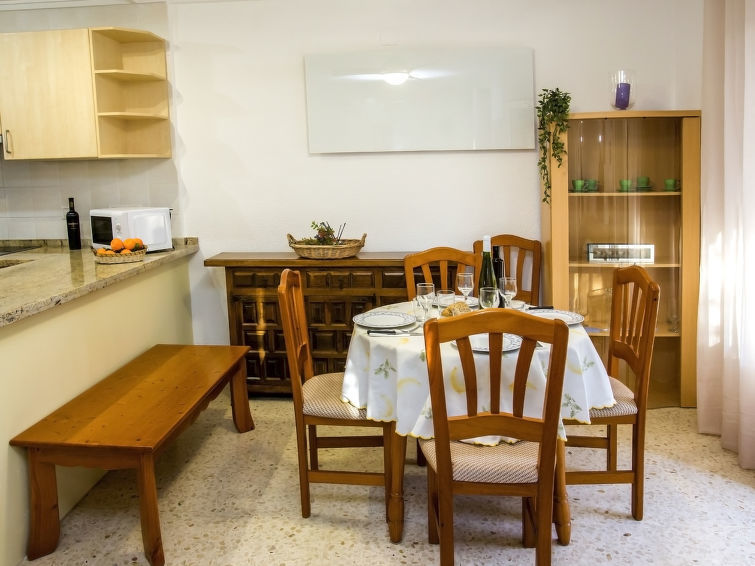 "El Palmar", maison mitoyenne 4 pièces 70 m2. Clair, aménagement confortable et plaisant: séjour/salle à manger avec Télévision numérique, air-conditionné et chauffage à air chaud. Sortie sur le jardinet. Cuisine ouverte (four, lave-vaisselle, 4 plaques vitrocéramiques, grille-pain, micro-ondes, congélateur, cafetière électrique). WC séparé. Pas de chauffage. À l'étage supérieur: 1 chambre avec 1 grand-lit (150 cm, longueur 200 cm), air-conditionné et chauffage à air chaud. 1 chambre avec 2 lits (90 cm, longueur 200 cm), air-conditionné et chauffage à air chaud. 1 petite chambre avec 1 lit (90 cm, longueur 190 cm). Douche/WC. Grand jardinet 24 m2. Meubles de terrasse. A disposition: lave-linge, fer à repasser, moustiquaire, chaise haute pour enfant, lit bébé, sèche-cheveux. Internet (Connexion WIFI, gratuit). Veuillez noter: TV seulement ES. VT-491588-A // Reg. Nr.: ESFCTU00000304500030736700000000000000000VT-491588-A2