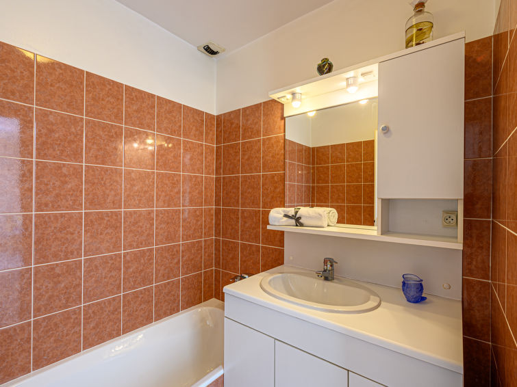"Résidence Villa Des Iles", apt 4 pièces 72 m2 au 3ème étage. Aménagement confortable: séjour/salle à manger avec TV (écran plat). Sortie sur la terrasse. 1 chambre avec 1 divan-lit double (1 x 120 cm, longueur 190 cm). Cuisine (4 plaques de cuisson, four, lave-vaisselle, cafetière électrique, combiné micro-ondes). Salle de bains, WC séparé. À l'étage supérieur: 1 chambre avec 1 grand-lit (1 x 160 cm, longueur 190 cm). 1 chambre avec 1 grand-lit (1 x 140 cm, longueur 190 cm). Douche, WC séparé. Terrasse 5 m2. Meubles de terrasse. Très belle vue sur la mer. A disposition: lave-linge. Internet (Connexion WIFI, en sus). Garage (1 Voiture). Annonce d'un particulier (art 155, IV du CGI).