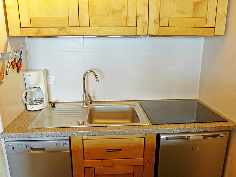"Sérac V7" studio 33 m2 au 7ème étage, situation sud. Aménagement confortable: entrée avec 2 x 2 lits superposés (80 cm, longueur 190 cm). Séjour/salle à manger avec 1 lit gigogne (2 x 80 cm, longueur 190 cm), TV (écran plat), chauffage électrique. Sortie sur la loggia, orientée sud. Coin cuisine (four, lave-vaisselle, 3 plaques vitrocéramiques, bouilloire électrique, micro-ondes, cafetière électrique). Salle de bains, WC séparé. Très belle vue sur les montagnes et les pistes de ski. A disposition: Internet (Connexion WIFI, en sus). Veuillez noter: logement non-fumeur. Détecteur de fumée. 73257010295WF