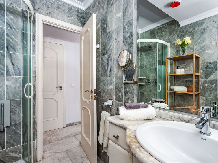 "Residencial Marina", appartement 4-kamers 115 m2 op de 1e verdieping. Het objekt is geschikt voor 4 volwassenen + 2 kinderen. Ruim, gedeeltelijk gerenoveerd in 2024, comfortabel en mooi ingericht: woon-/eetkamer met Sat-TV (Flatscreen TV), elektrische kachel en air-conditioning. Uitgang naar het terras. 2 kamers, elke kamer heeft 1 2-pers bed (135 cm, lengte 190 cm), elektrische kachel. 1 2-pers. kamer met 2 bedden (90 cm, lengte 190 cm), elektrische kachel. Keuken (afwasmachine, 4 keramische glas kookplaten, broodrooster, waterkoker, magnetron, diepvriezer, elektrische koffiemachine, combimagnetron) met eettafel. Bad/WC, douche/WC. Terras 8 m2. Terrasmeubelen. Ter beschikking: wasmachine, strijkijzer, haardroger. Internet (WiFi, gratis). Parkeerplaats nr. 52. VUT/MA/80558 // Reg. Nr.: ESFCTU0000290350002423080000000000000000VUT/MA/805581