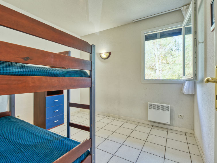 Huis in een rij 3-kamers 60 m2. Woon-/eetkamer met 1 uitschuifbaar bed (2 x 90 cm, lengte 190 cm), Flatscreen TV. Uitgang naar het terras. Open keuken (afwasmachine, 4 keramische glas kookplaten, broodrooster, waterkoker, magnetron, elektrische koffiemachine). Badkamer, aparte WC. Bovenverdieping: 1 kamer met 1 2-pers bed (140 cm, lengte 190 cm), douche/WC. 1 kamer met 1 x 2 stapelbedden (90 cm, lengte 190 cm). Terras 20 m2, op het zuiden gelegen, tuin. Terrasmeubelen. Ter beschikking: Internet (WiFi, gratis). Parkeerplaats. Niet rokers woning. Rookmelders. Aanbod door een particulier volgens art. 155, IV van CGI.