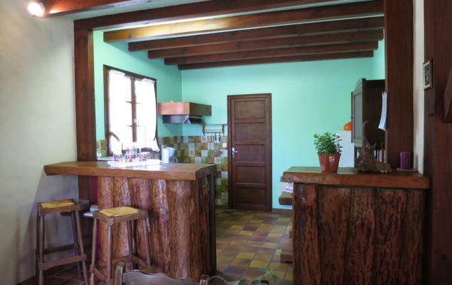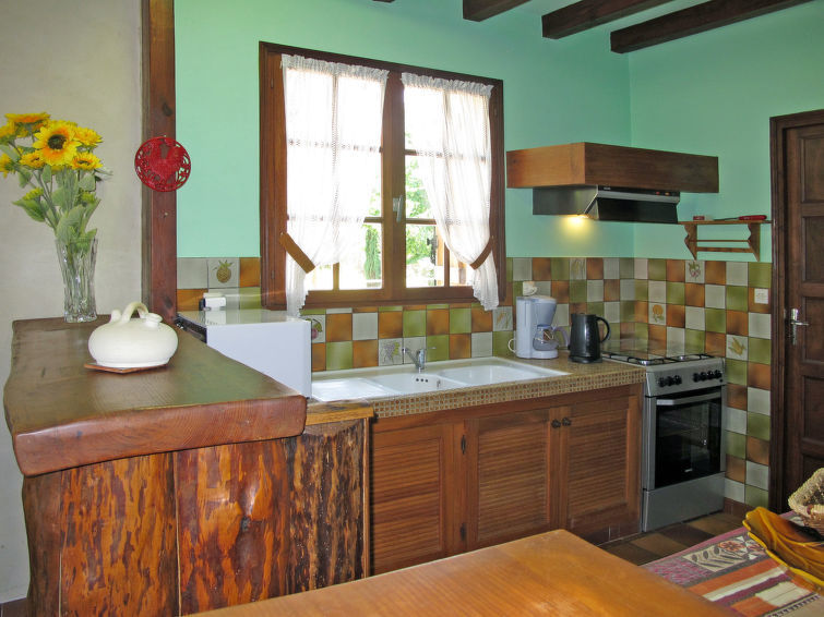 "Eucalyptus (LIX110)", huis 4-kamers 100 m2. Doelmatig en rustiek ingericht: woon-/eetkamer met open haard (alleen decoratie), eettafel, Sat-TV en internationale TV-zenders (Flatscreen TV). Uitgang naar het terras. 3 kamers, elke kamer heeft 1 2-pers bed (140 cm, lengte 190 cm). Kleine, open keuken (1 kookplaat, oven, afwasmachine, 3 kookpitten (vlammen), broodrooster, waterkoker, magnetron, diepvriezer, elektrische koffiemachine) met bar. Badkamer, aparte WC. Elektrische verwarming. Terras overdekt. Terrasmeubelen, barbecue (verrijdbaar), ligstoelen (3), bergruimte. Ter beschikking: wasmachine, strijkijzer, kinderstoel, kinderbed. Internet (Internet (WiFi), gratis). Let op: rookvrij huis. Rookmelders.