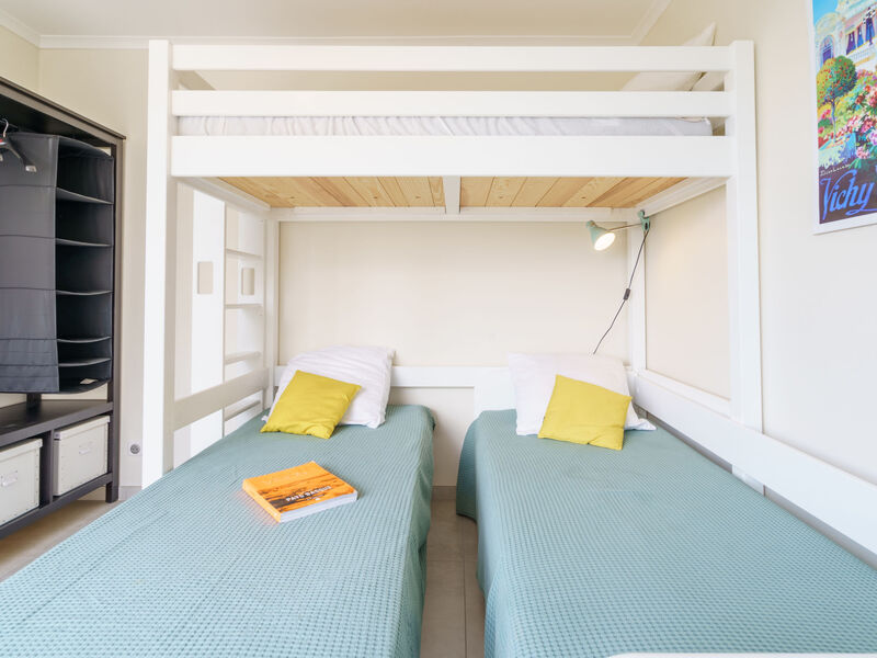Appartement 3-kamers 64 m2 op de 4e verdieping. Het objekt is geschikt voor 2 volwassenen + 3 kinderen. Comfortabel en mooi ingericht: woon-/eetkamer met TV (Flatscreen TV). Uitgang naar het terras, op het westen. 1 kamer met 1 2-pers bed (140 cm, lengte 190 cm), TV (Flatscreen TV). 1 kamer met 1 stapelbedden (90 cm, lengte 190 cm), 2 uitschuifbare bedden (2 x 90 cm, lengte 190 cm). Open keuken (oven, afwasmachine, 4 inductiekookplaten, broodrooster, magnetron, diepvriezer, elektrische koffiemachine, pads voor de koffiemachine (Senseo) extra, kookeiland). Douche, aparte WC. Groot terras 30 m2, op het westen gelegen. Terrasmeubelen. Uitzicht in de verte op zee en de plaats. Ter beschikking: wasmachine, strijkijzer, haardroger. Internet (Internet (WiFi), gratis). Geschikt voor families. Niet rokers woning. Rookmelders. Aanbod door een particulier volgens art. 155, IV van CGI. 6412200384462
