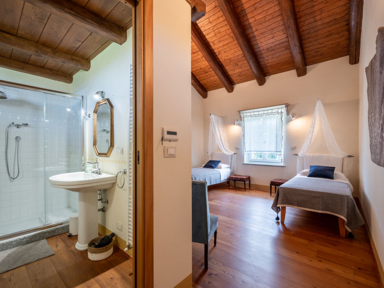 Huis 9-kamers 500 m2 op 3 verdiepingen. Licht, zeer comfortabel en rustiek ingericht: groot, open eetkamer met eettafel. Uitgang naar de tuin. Biljardkamer. Open keuken (oven, afwasmachine, 5 kookpitten (vlammen), broodrooster, waterkoker, diepvriezer, elektrische koffiemachine). Uitgang naar de tuin. Douche/WC, aparte WC. Bovenverdieping: groot, open woonkamer met Sat-TV. 2 kamers, elke kamer heeft 1 2-pers bed (160 cm). 1 kamer met 1 bed en Sat-TV. Kleine woonkamer. Douche/WC, aparte WC. 2e Verdieping: 1 kamer met 1 2-pers bed (160 cm), bad/douche/WC en hot tub. 1 kamer met 2 bedden en douche/WC. Open galerij met afgeschuinde daken. Verwarming. Verwarming alleen beschikbaar van 01.10. tot 30.04. Houten vloeren. 2 balkons, 2 terrassen overdekt. Terrasmeubelen, balkonmeubilair, ligstoelen (6). Panoramazicht op het landschap en Castello di Frinco. Ter beschikking: wasmachine, kinderbed. Internet (WiFi, gratis). Maximaal 2 huisdieren/honden toegestaan. Geen verplichte extra kosten ter plaatse te betalen. Bedlinnen, handdoeken, eindschoonmaak en alle energiekosten zijn inclusief. IT005055C2NNENKQY8