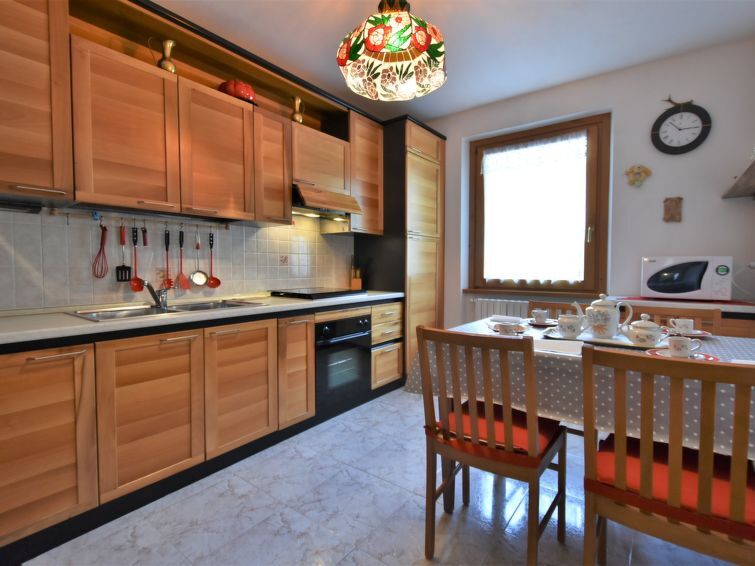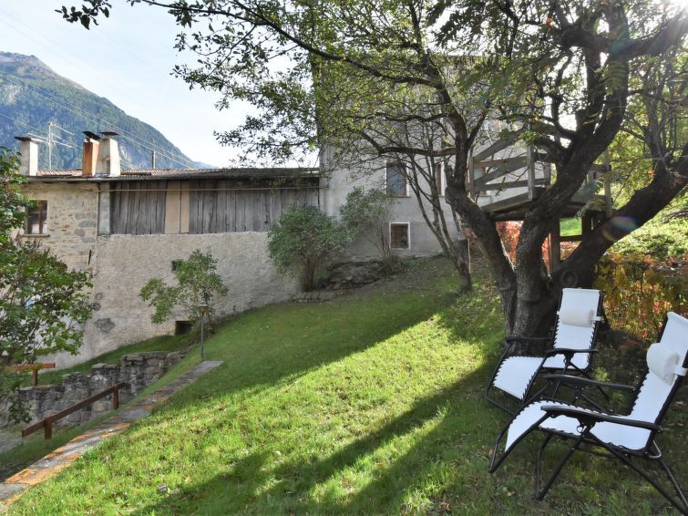 Klein, comfortabel appartementencomplex "Casa Le Fontane", 1.260 m boven zeeniveau, van 2 verdiepingen. In het gehucht Fontane, 7 km van het centrum van Bormio, 42 km van het centrum van Livigno, rustige ligging, 6 km van het skigebied. Voor alleengebruik: tuin op verschillende niveaus, 100 m2 (niet omheind) met gazon en bomen. Tuinmeubelen, barbecue. In het huis: bergruimte voor fietsen, berging voor ski's, centrale verwarming. In de winter sneeuwkettingen aanbevolen. Trappenweg (13 treden) naar het huis. Parkeerplaats (voor 2 auto's) bij het huis, openbare parkeerplaatsen in de straat. Levensmiddelenwinkel 1.5 km, supermarkt 1.5 km, restaurant 1.5 km, bar 1.5 km, thermaalbad "Terme di Bormio" 7 km. Auto noodzakelijk.