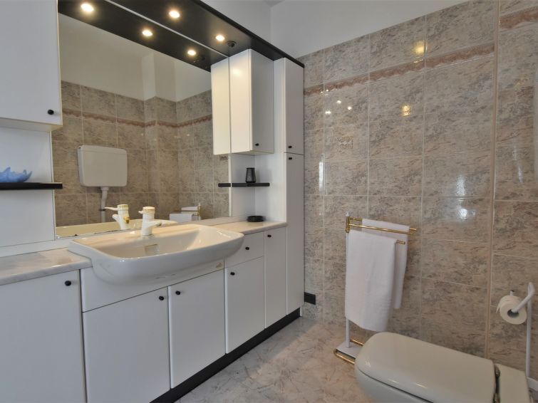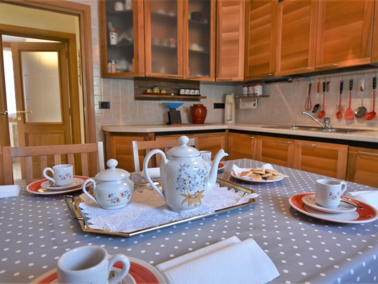 Appartement 3-kamers 90 m2 op de 1e verdieping. Ruim, doelmatig en comfortabel ingericht: woon-/eetkamer met zwedenkachel (alleen decoratie), eettafel en TV. Uitgang naar de tuin. 1 groot 2-pers. kamer. 1 kamer met 2 bedden. Keuken (1 kookplaat, oven, 3 kookpitten (vlammen), broodrooster, waterkoker, magnetron) met eettafel. Bad/douche/bidet/WC. Verwarming. Parketvloeren. Tuin. Terrasmeubelen, barbecue, ligstoelen (4). Uitzicht op de bergen en de tuin. Ter beschikking: wasmachine, haardroger. Internet (Internet (WiFi), gratis). Rookvrij huis. Privé ingang. IT014072C2SY265NGM