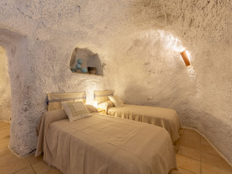 "Cueva Mariana Pineda", huis 3-kamers 70 m2. Woon-/eetkamer met eettafel, Digitale TV, Flatscreen TV en verwarming. 1 kamer met 2 bedden (90 cm, lengte 190 cm). 1 kamer met 1 2-pers bed (150 cm, lengte 190 cm). Keuken (4 keramische glas kookplaten, broodrooster, magnetron, diepvriezer, elektrische koffiemachine). Douche/bidet/WC. Houtverwarming. Terras. Terrasmeubelen. Ter beschikking: wasmachine, strijkijzer, kinderstoel, kinderbed tot 2 jaar, haardroger. Internet (WiFi, gratis). Niet rokers woning. VTAR/AL/01159 // Reg. Nr.: ESFCTU000004003000388815000000000000000VTAR/AL/011592