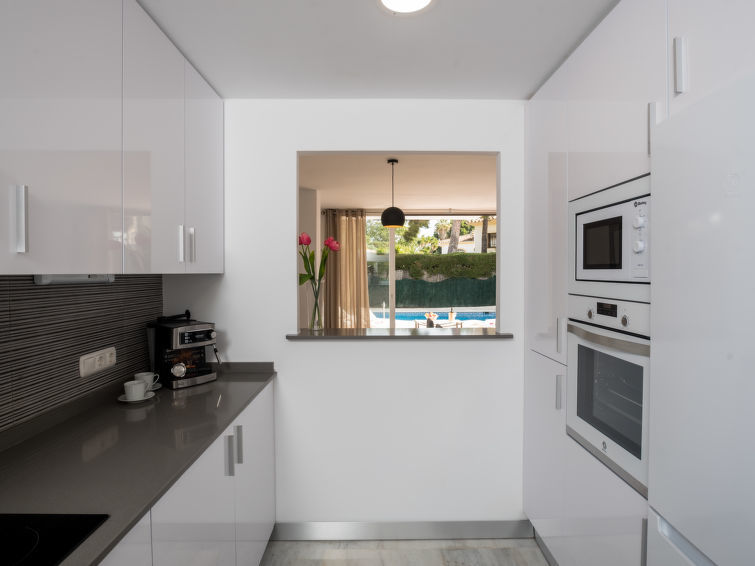 "La Palmera", huis 4-kamers 250 m2. Het objekt is geschikt voor 8 volwassenen. Modern en gezellig ingericht: woon-/eetkamer 60 m2 met dakraam met open haard en eettafel. Uitgang naar de zitplaats in de tuin, naar het zwembad. 1 kamer met 2 bedden (90 cm, lengte 200 cm), wastafel en douche/bidet/WC. Keuken (oven, afwasmachine, 4 keramische glas kookplaten, broodrooster, waterkoker, magnetron, diepvriezer, elektrische koffiemachine). Aparte WC. Air-conditioning, heteluchtverwarming. Bovenverdieping: 1 kamer met 1 bed (150 cm, lengte 200 cm), bad/bidet/WC en wastafel. Uitgang naar het terras. 1 kamer met 2 bedden (90 cm, lengte 200 cm). Uitgang naar het terras. 1 kamer met 1 bed (150 cm, lengte 200 cm). Douche/bidet/WC. Air-conditioning, heteluchtverwarming. Natuurstenen vloeren. Uitzicht op het zwembad en de tuin. Ter beschikking: wasmachine. Internet (WiFi). Garage bij het huis. Geschikt voor families. Rookvrij huis. VUT/MA/49498 // Reg. Nr.: ESFCTU0000290370000858620000000000000000VUT/MA/494985