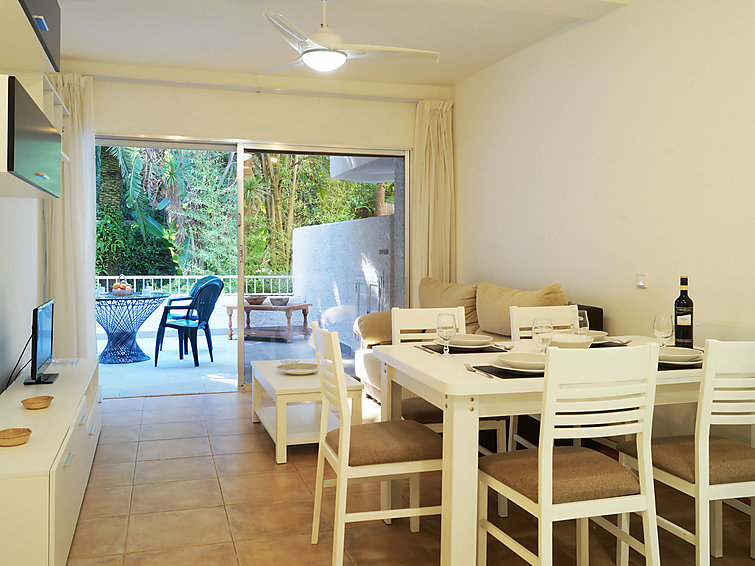 "Jardines del Mar", appartement 2-kamers 60 m2, souterrain. Het objekt is geschikt voor 2 volwassenen + 1 kinderen. Eenvoudig en comfortabel ingericht: woon-/eetkamer met Digitale TV, air-conditioning en heteluchtverwarming. Uitgang naar het terras. 1 2-pers. kamer met 1 2-pers bed (150 cm, lengte 190 cm). Uitgang naar het terras. Kleine keuken (2-pits kookplaat, oven, magnetron, diepvriezer) met doorgeefluik. Bad/bidet/WC. Terras 15 m2, overdekt. Terrasmeubelen, ligstoelen (2). Uitzicht op de tuin. Ter beschikking: wasmachine. Internet (WiFi, gratis). Parkeerplaats. Telefoon voor inkomende gesprekken. VUT/MA/08877