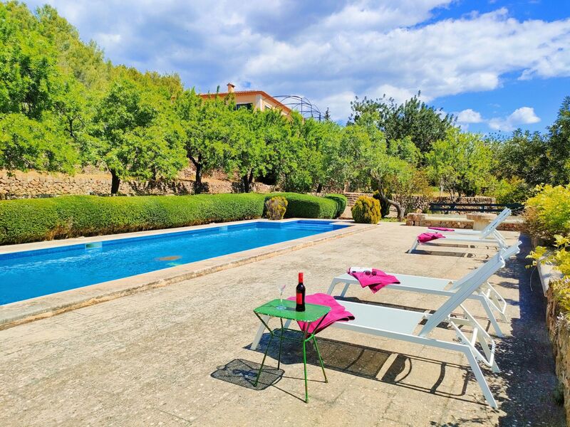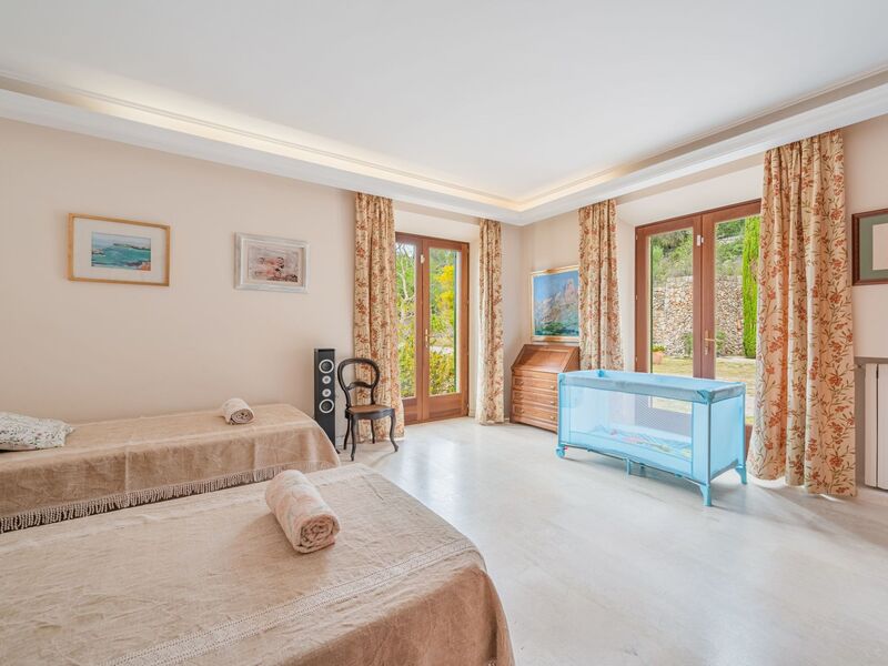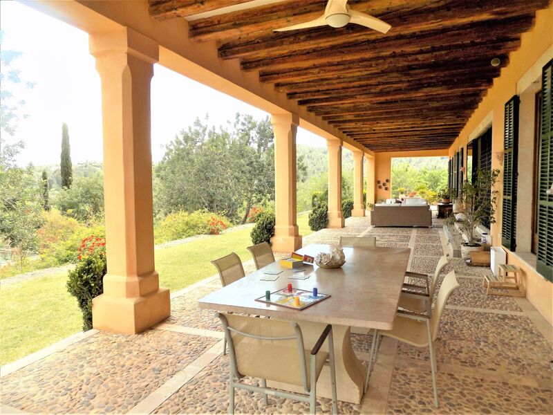 Esporles 7 km van Valldemosa: Groot, gezellige, comfortabele villa van 2 verdiepingen. Rustige ligging, 10 km van zee. Voor alleengebruik: terrein, wilde tuin, openluchtzwembad (15 x 4 m, 60 - 220 cm diepte, seizoensgebonden beschikbaarheid: 01.Mrt. - 31.Okt.). Patio, prieel, barbecue (schommel). In het huis: Internet (WiFi), biljart, centrale verwarming, wasserette, wasmachine, droger. Eigen garage. Winkel 4 km, levensmiddelenwinkel 4 km, supermarkt 4 km, restaurant 4 km, bakkerij 4 km, bushalte "S'esgleieta" 6 km. Attracties in de buurt: Parc natural de s'albufera 50 km, Valldemossa 8 km, Palma de Mallorca 22 km, Soller 12 km. Wandelgebied Serra de Tramuntana 15 km. Auto noodzakelijk. Geschikt voor families, geschikt voor senioren. Het objekt is geschikt voor 10 volwassenen. De eigenaar accepteert geen jeugdgroepen. Lokale verkoop van streekproducten. Laden en lossen van de baggage is mogelijk bij het huis. Vliegveld in de buurt 25 km van het huis.