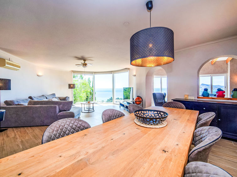 "Otra Vida", villa 7-kamers 370 m2 op 2 verdiepingen. Ruim en licht, comfortabel en mooi ingericht: groot, open woon-/eetkamer met Sat-TV, air-conditioning, ventilator en heteluchtverwarming. Uitgang naar het terras. 1 kamer met 1 2-pers bed (1 x 180 cm, lengte 200 cm), douche/WC, air-conditioning en heteluchtverwarming. 2 kamers, elke kamer heeft 1 2-pers bed (1 x 180 cm, lengte 200 cm), air-conditioning en heteluchtverwarming. Open keuken (oven, afwasmachine, 4 keramische glas kookplaten, broodrooster, waterkoker, magnetron, elektrische koffiemachine). Douche/WC. Souterrain: 1 kamer met 1 2-pers bed (1 x 140 cm, lengte 200 cm), douche/WC, air-conditioning en heteluchtverwarming. 1 kamer met 1 2-pers bed (1 x 180 cm, lengte 200 cm), air-conditioning en heteluchtverwarming. Uitgang naar het terras. 2 groot terrassen. Terrasmeubelen, barbecue, ligstoelen, zitgelegenheid. Panoramazicht op zee en de plaats. Ter beschikking: wasmachine, strijkijzer, haardroger. Internet (WiFi, gratis). Parkeerplaats. Rookvrij huis. CV-VUT0516604-A // Reg. Nr.: ESFCTU0000030530001734790000000000000CV-VUT0516604-A1