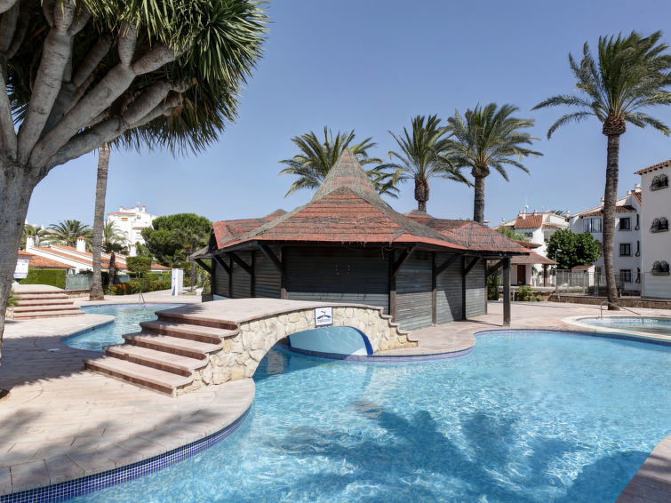 Residentie met 2 zwembaden voor medegebruik. Groot, gezellige residentie "El Palmar 9". In de wijk Las Marinas, 4.5 km van het centrum van Dénia, 400 m van zee, de straat oversteken. Voor medegebruik: openluchtzwembad (35 x 30 m, 80 - 210 cm diepte, seizoensgebonden beschikbaarheid: 01.Jan. - 31.Dec.) met trap. Kinderzwembad, glijbaan, kinderspeelplaats, Openbare parkeergarage. Supermarkt 400 m, restaurant 300 m, bar, café 300 m, bushalte 300 m, zandstrand 400 m. Golfterrein (18 holes) 11 km, tennis 2 km. Geen lift.
